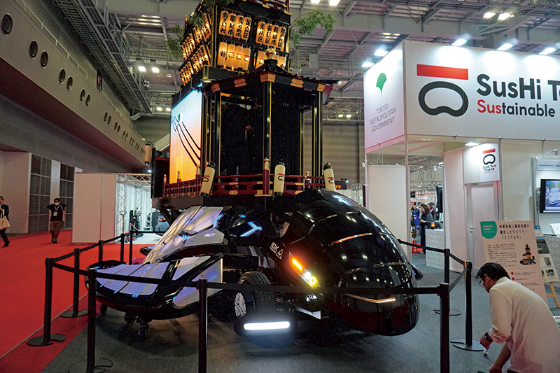 土台は亀のようなフォルムとなっており上には神輿の山車が合体している。山車には杉の木を使っているらしい。見た目のインパクトは大!